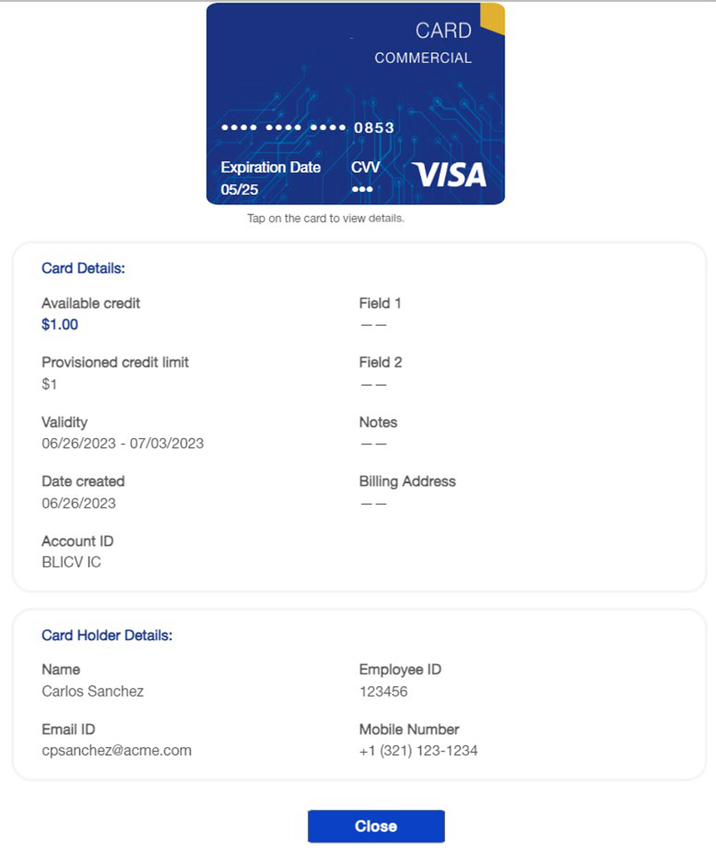 Le système utilise un numéro de carte généré de façon unique, une date d’expiration et un code de sécurité comme serveur mandataire, ce qui rend le système hautement sécurisé. Vous pouvez limiter la fraude en définissant de courtes périodes d’expiration et des limites de carte pour les articles que le titulaire de carte doit acheter. L’utilisation du portefeuille mobile offre une couche supplémentaire de sécurité des paiements.