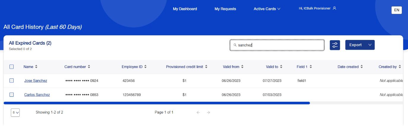 Cliquez sur Exporter pour exporter la liste des cartes expirées.